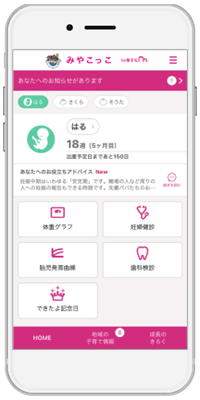 福岡県みやこ町に採用された『みやこ町母子手帳アプリ みやこっこ』は、スマートフォン・タブレット端末・PCに対応したサービスで、妊産婦と子どもの健康データの記録・管理や予防接種のスケジュール管理、出産・育児に関するアドバイスの提供、離れた地域に住む祖父母など家族との共有機能や、町が配信する地域の情報をお知らせするなど、育児や仕事に忙しい母親や父親を助けてくれる便利な機能が充実しています。