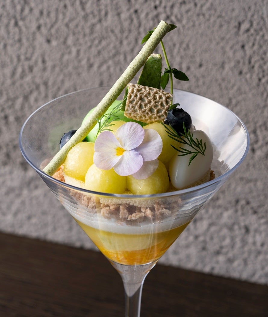 2023年12月に静岡県熱海市に2軒目となる「熱海・伊豆山 佳ら久」が開業し、静岡県とのご縁が深まった事から、今回は静岡県産の静岡クラウンメロンを主役にしたパルフェをご用意いたしました。