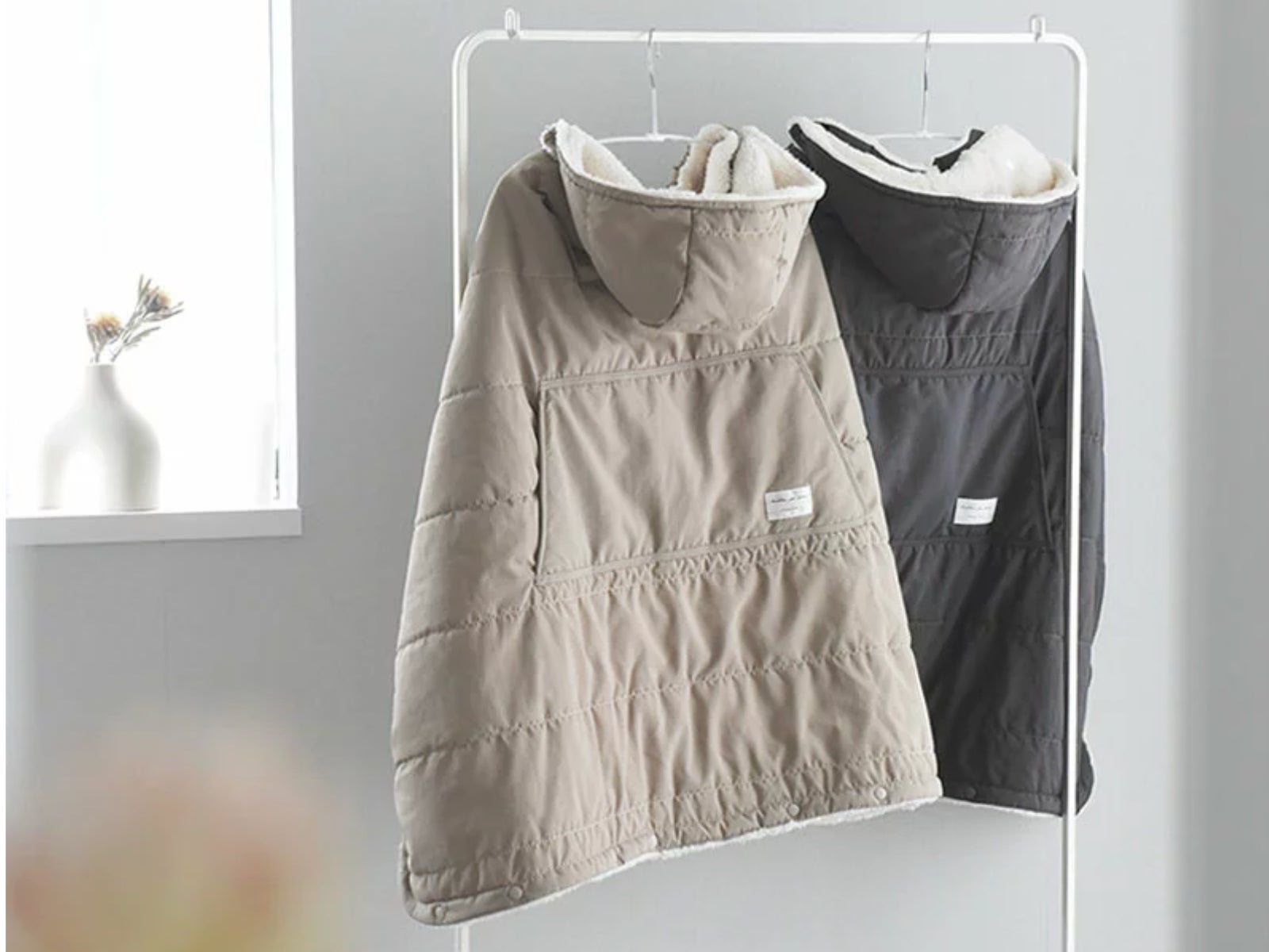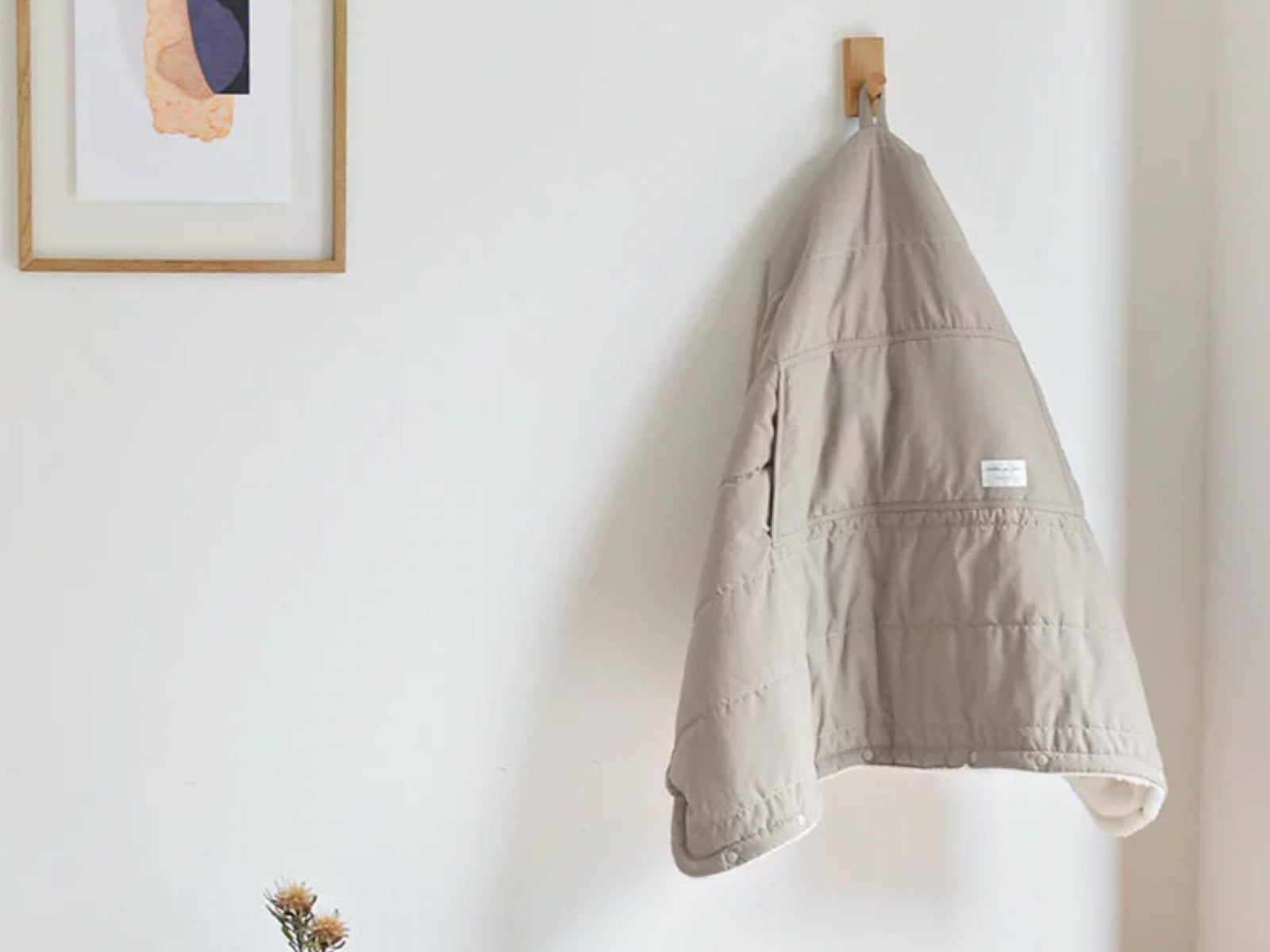 フードとスナップボタンを外してフラットな状態にすれば「ひざ掛け」に変身!