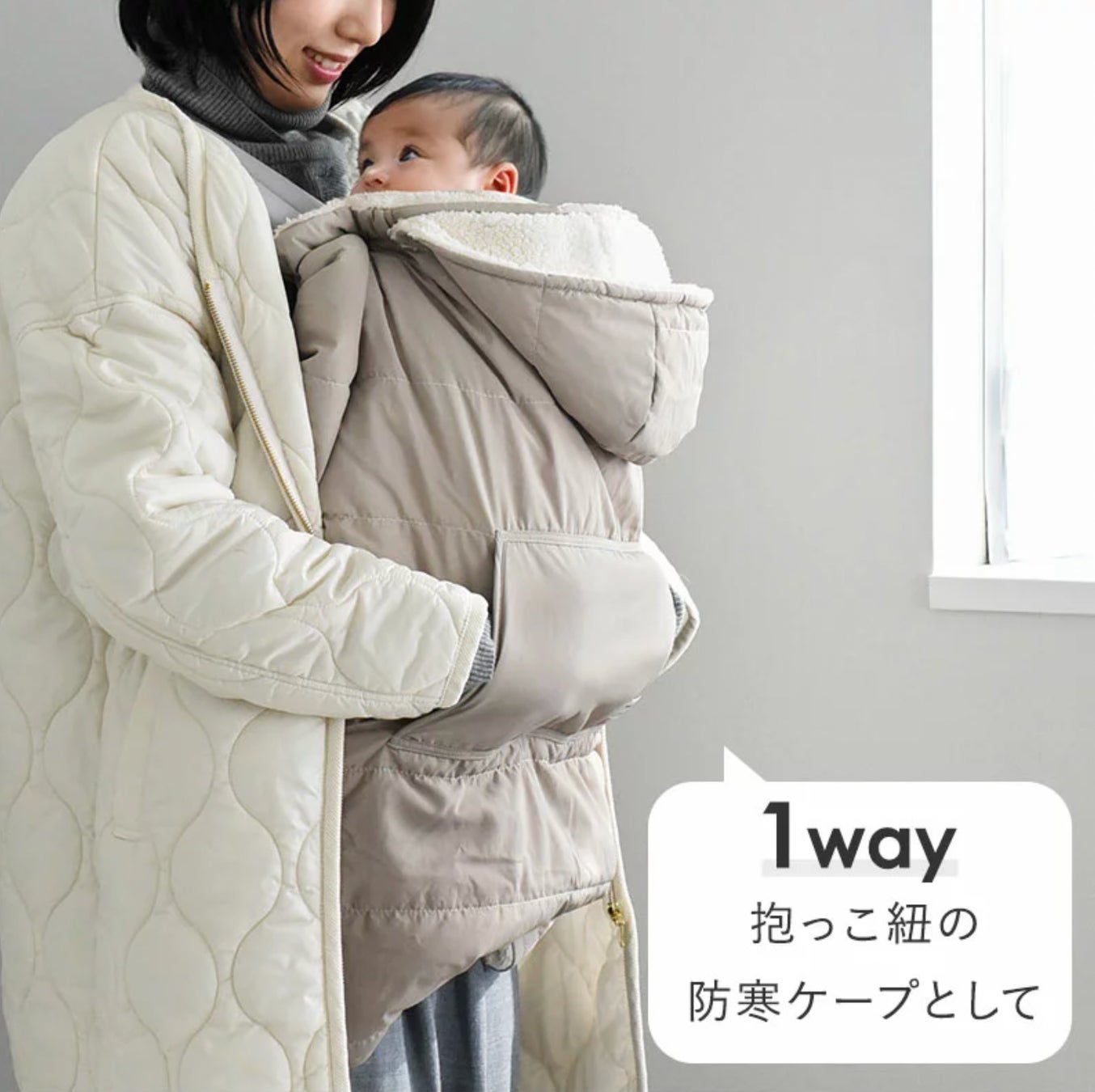 ベビーとのお出かけに欠かせない、ケープなどの防寒アイテム。「抱っこ紐専用」や「ベビーカー専用」のものが多い中、こちらは形を変えてどちらにも使えるデザインです。