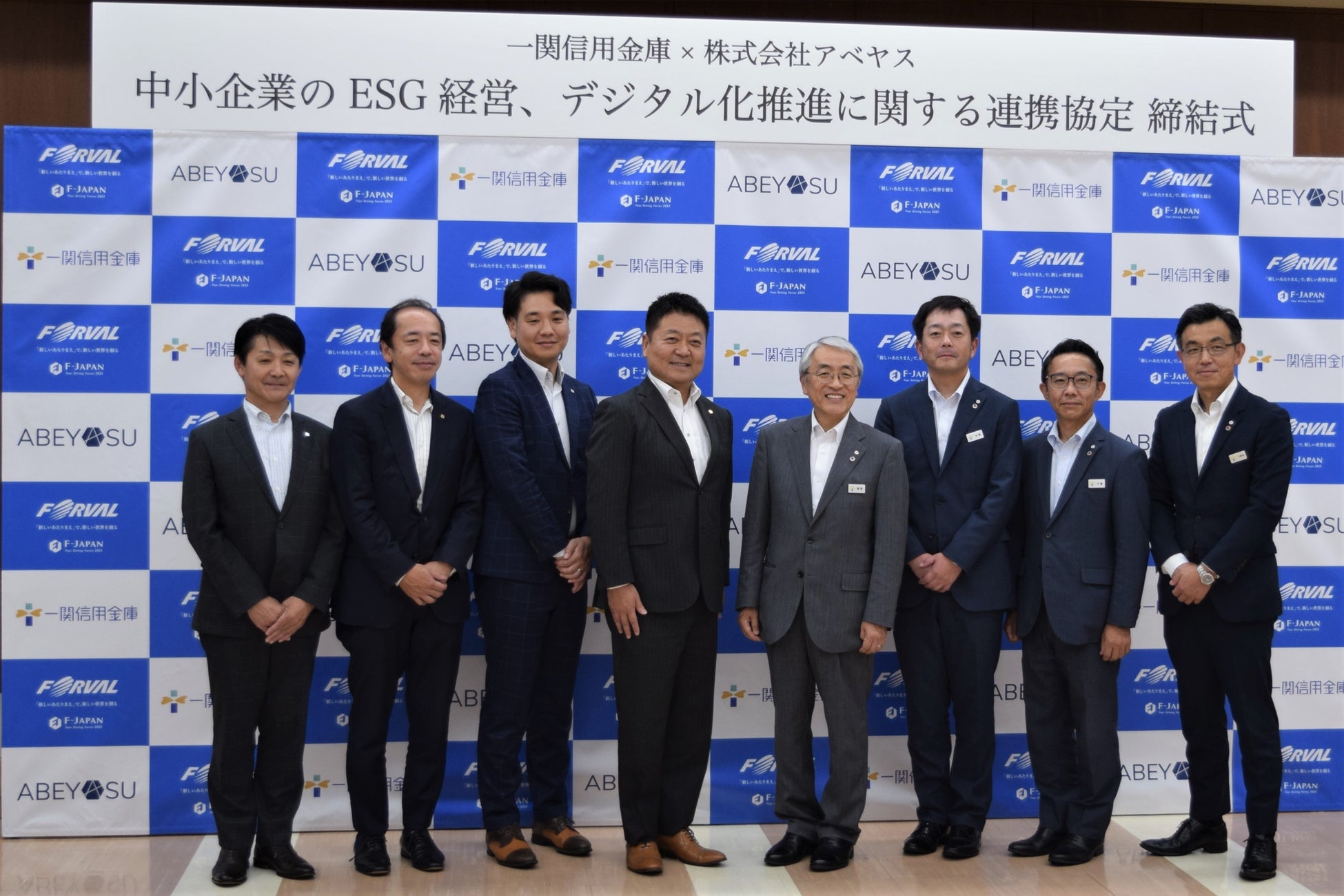 『「新しいあたりまえ」で、新しい世界を創る FORVAL』を理念に掲げる、次世代経営コンサルタント集団である株式会社フォーバル(本社:東京都渋谷区、代表取締役社長:中島 將典、 以下「フォーバル」)のグループ会社である株式会社アベヤス(本社:岩手県北上市、代表取締役社長:橋本 竜博)以下「アベヤス」)は、一関信用金庫(本店:岩手県一関市、理事長:菅原 一由)と業務提携の締結をし、 2024年7月25日に締結式を行いました。アベヤスはこの業務提携を通して、中小企業のESG経営の促進、およびそのための手段としても有効となる経営のDX推進を伴走型で支援します。