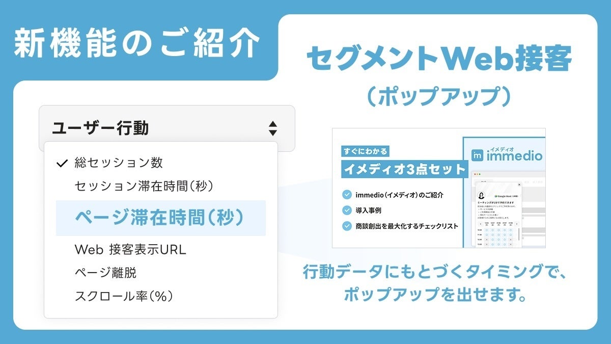 Web訪問者の“今ほしい情報”を逃さない。immedio、セグメントWeb接客(ポップアップ)を提供開始