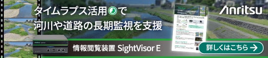 アンリツ株式会社(社長 濱田 宏一)は、河川や道路などの社会インフラにおける中長期的な状況変化を効率的に可視化する「SightVisor E」タイムラプス動画を活用したソリューション例を紹介したリーフレットを、当社Webサイトにて公開いたしました。