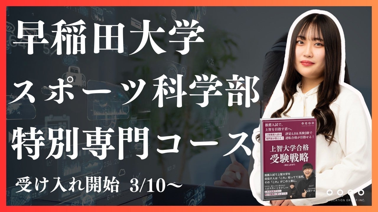 この度、総合型選抜専門塾EQAOでは、早稲田大学スポーツ科学部特別専門コースの開講を決定いたしました!EQAOだからこそ提供できる独自のメソッドで、難関大学合格を目指す受験生を全力でサポートします!!
