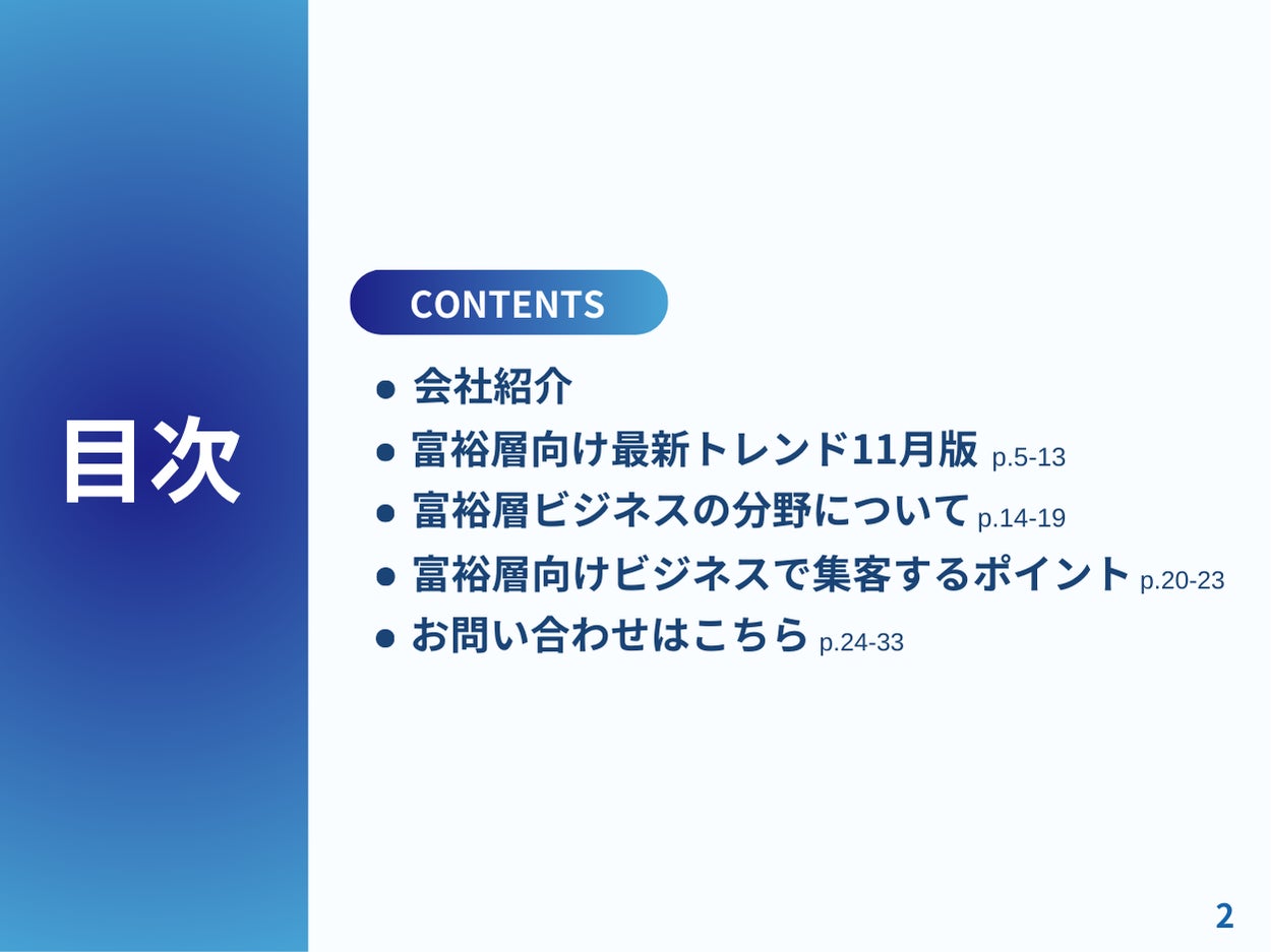 本レポートでは、富裕層の集客に課題を感じている方向けに効果的なマーケティング手法を取り上げています。また、富裕層向け市場に影響を与える最新トレンド(2024年11月版)についても紹介しています。