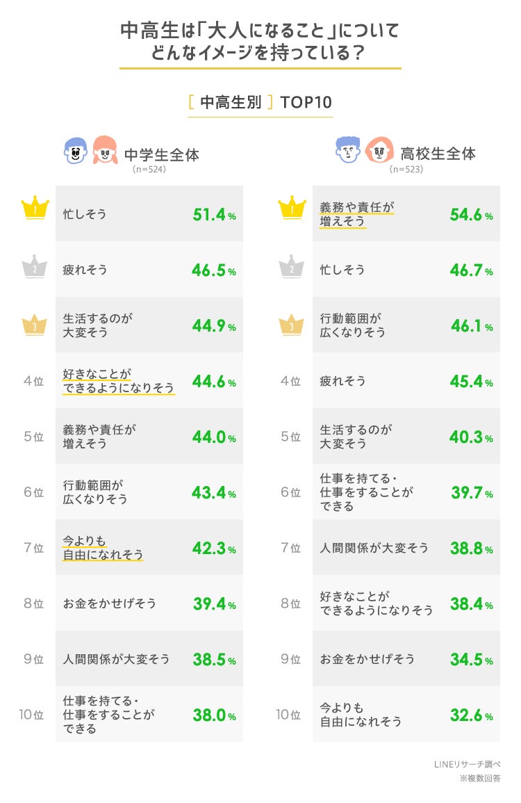 【LINEリサーチ】中学生・高校生のなりたい職業は「国家公務員・地方公務員」が上位。「大人になること」のイメージは不安と期待が入り交じる結果に