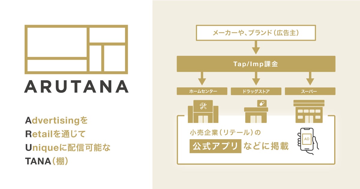 ARUTANAとは、リテール公式アプリ群に横断で広告配信可能なメディアプラットフォームです。