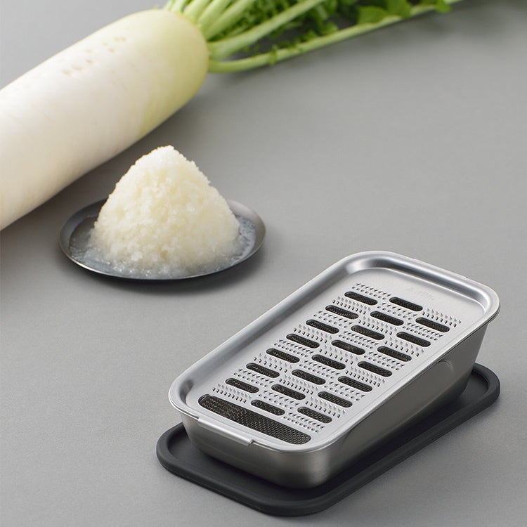 金属加工で有名な新潟の燕市にある株式会社ツボエ。創業は明治40年、110年以上もの歴史がある老舗刃物メーカーから、ふわっふわの大根おろしがいとも簡単にできるおろし器が入賞。TVでも紹介が絶えないが、長年の試行錯誤の末、絶妙な傾斜と独自のクワトロ刃で力を入れずにスルスルと作れると、話題沸騰!