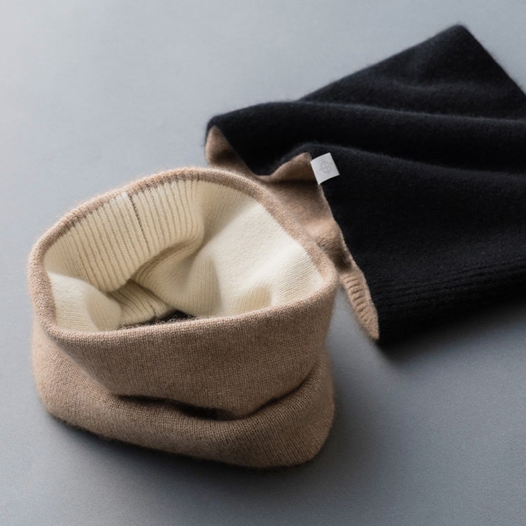 群馬県の「東京日莫」の編みたて技術により世界のトップブランドに比肩する「el alto」。世界最高ランクのベビーカシミヤ 100%で仕立てた、とろとろの着け心地のネックウォーマが入賞。かぶるだけで防寒できるだけでなく、計算された設計によって自然なドレープ感が生まれ、エレガントな雰囲気が演出できる。