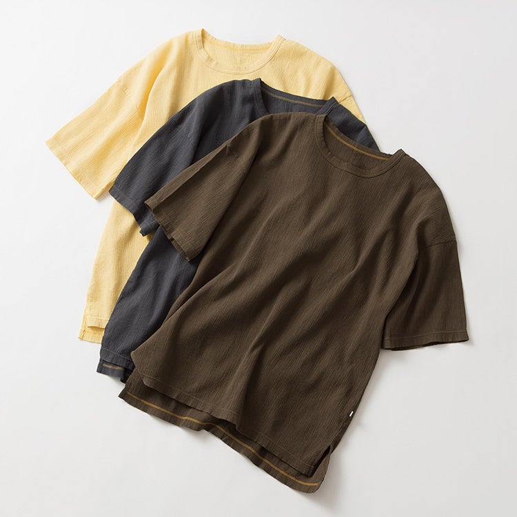縫製を生業に1950年創業した山城より、京都伝統「ちぢみ」を現代に生かしたTシャツがランクイン!楊柳生地ならではのデコボコした生地は通気性・速乾性も抜群で、サラリとした肌触りをキープ。ゆるっとしたビッグシルエットなのに、すっきり見えるスタイルも◎だ。暑い日でも涼しく過ごせるアイテムとして大ヒット!