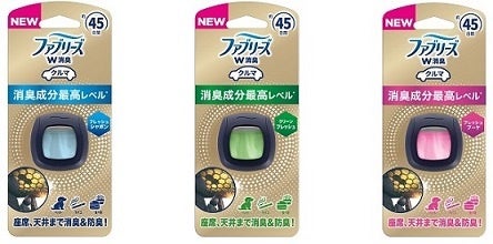 「ファブリーズ イージークリップ 消臭成分最高レベル*1」は従来の「ファブリーズ イージークリップ」の約2倍の消臭成分を最高レベル*1配合し、車内の座席、天井についた食べ物やタバコ、ペット臭などの頑固なニオイも消臭・防臭します。また、クリップタイプの本体をエアコン送風口に装着するだけで、車内に防臭成分が広がる「防臭コート」により、消臭・防臭効果がこれまでの約30日間から約45日間に伸び、より長続き*3するようになりました。