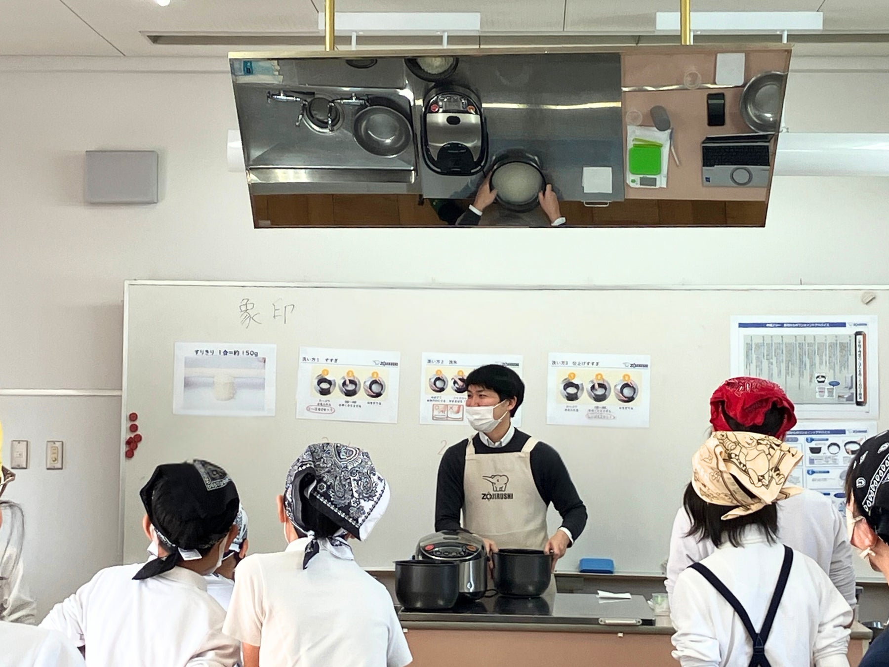 象印マホービン株式会社は、2月6日・13日の2日間、奈良県の三宅町立三宅小学校で、小学5年生と6年生を対象に「おいしいごはんの炊き方」をテーマにした特別出張授業を実施しました。お米の計量、洗い方、炊きあがってからの撹拌・盛り付けなどの体験も交えながら、おいしいごはんの炊き方をお伝えしました。