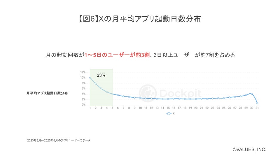 インターネット行動ログ分析によるマーケティング調査・コンサルティングサービスを提供する株式会社ヴァリューズ(本社:東京都港区、代表取締役社長:辻本 秀幸、以下「ヴァリューズ」)は、国内30のSNSアプリを対象とした「SNSユーザー数ランキング」調査(2023年8月~2025年8月)を実施しました。ヴァリューズが保有する約250万人の独自消費者パネルを活用したインターネット行動ログ分析ツール「Dockpit(ドックピット)」を使用して、国内SNS市場における各サービスのMAU(月間アクティブユーザー数)やユーザー属性を明らかにしています。2年間で特にユーザー数を急増させた新興SNSの動向を中心に、その結果の一部を抜粋してご報告いたします。