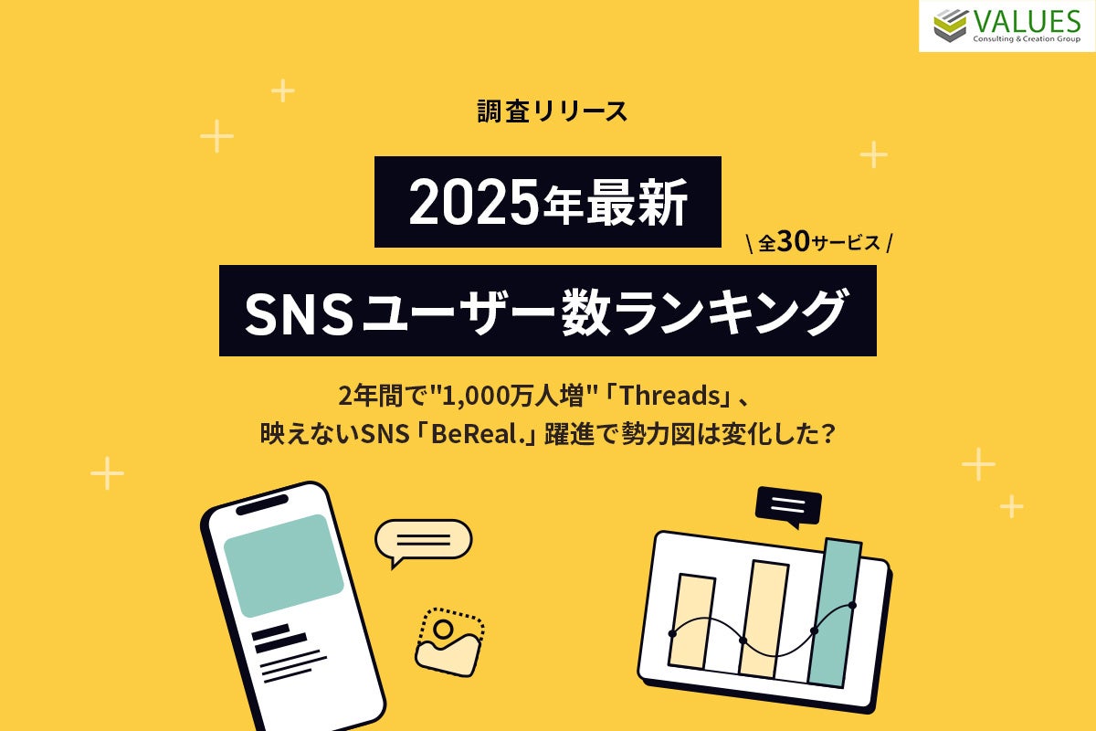 【調査リリース】2025年最新|SNSユーザー数ランキング(全30サービス)!2年間で"1,000万人増"「Threads」、映えないSNS「BeReal.」躍進で勢力図は変化した?
