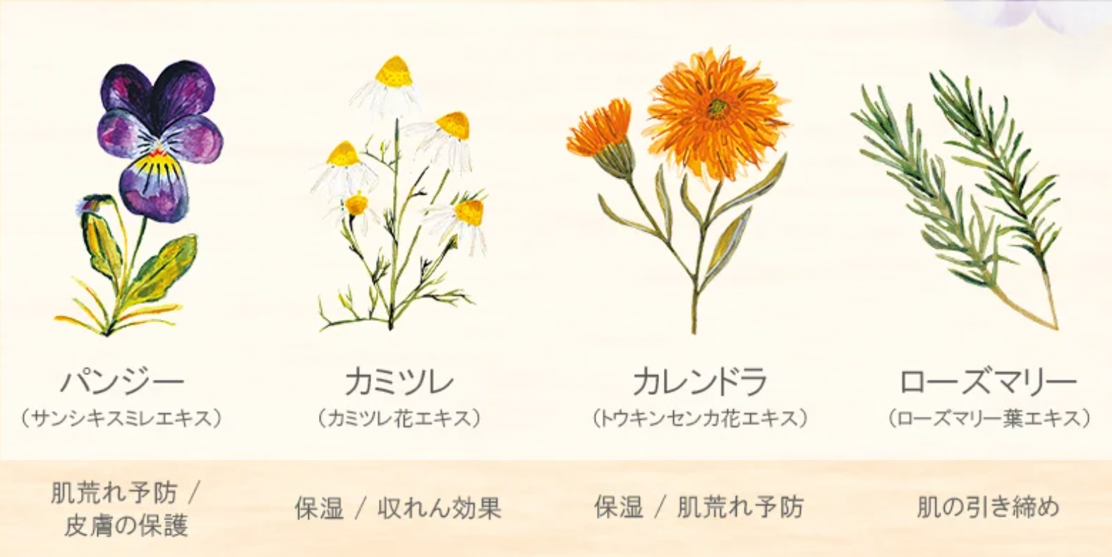 植物研究に基づき、お肌をいたわる伝統的な4種の伝統ハーブを配合。