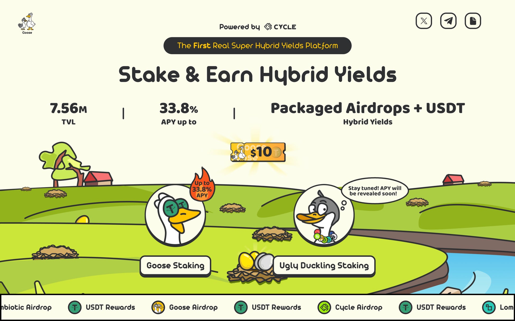 Cycle Networkの技術基盤は、すでに複数の革新的なアプリケーションで活用されています。その代表例が、Cycle Networkが開発する「Golden Goose」です。このプラットフォームは、Cycleのクロスチェーン仮想化技術と決済機能を活用し、業界初のスーパーハイブリッド・イールドプロトコルとして、投資家の多様なニーズに応えています。