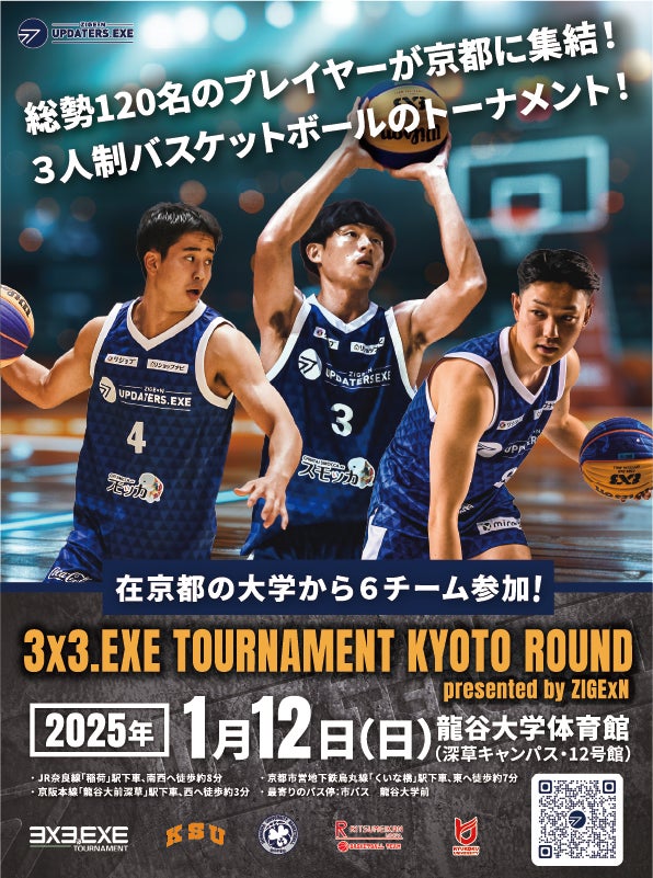 株式会社じげん(本社:東京都港区、代表取締役 社長執行役員CEO:平尾丈、東証プライム:3679、以下じげん)がオーナーを務める3x3(3人制バスケットボール)のプロチーム「ZIGExN UPDATERS.EXE(以下、じげんアップデーターズ)」が2025年1月に京都府京都市に誘致する、プロアマ混合オープントーナメント『3x3.EXE TOURNAMENT 2024-2025 KYOTO ROUND』 は、当初男子12チームと女子6チームによるトーナメントの予定でしたが、数多くのチームから参加のご要望をいただいたことにより、男子を24チームに増枠したところ満枠となりましたので、お知らせいたします。