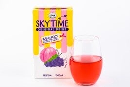 パッケージデザインはJAL社員から公募されたJALオリジナルドリンク「スカイタイム ももとぶどう」の特徴をそのままに、親しみやすいデザインに仕上げました。