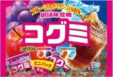 小粒でもしっかりとした弾力があり、そのぷにぷに食感がクセになるコグミ。果汁100%のフルーツアソートと4つの炭酸MIXのドリンクアソート、乳酸菌ドリンクMIXのラインナップです。コグミは小粒であることに加え、1粒1粒のグミの形がフルーツ型、ボトル型など見た目にも楽しめるグミです。