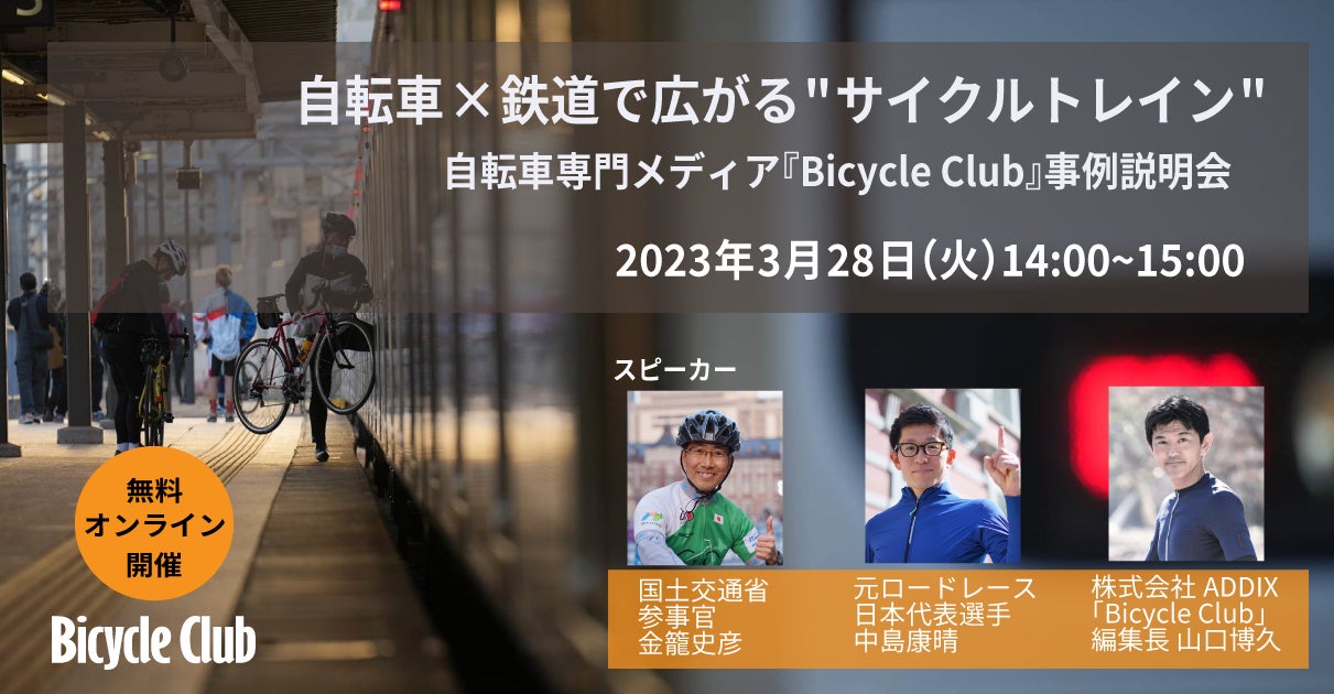株式会社ADDIX(所在地:東京都港区、代表取締役社長:前田 耕一 以下、ADDIX)が運営する、自転車専門メディア「Bicycle Club(バイシクルクラブhttps://funq.jp/bicycle-club/)」は、地方自治体・関係団体の方向けに、「自転車×鉄道で広がる“サイクルトレイン”」と題し、サイクルトレイン事例説明会をオンラインにて開催します。