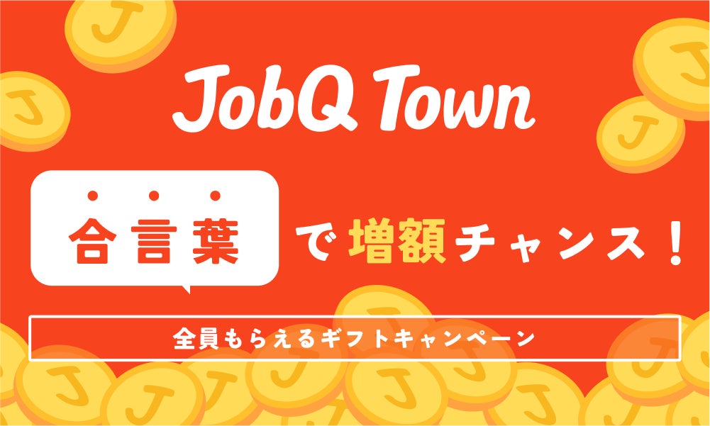 そこで「JobQ Town」では、社会人が今注目する時事ニュースやリアルな考えを探るために、「JobQ Town」ユーザーを対象に、2024年8月21日〜9月9日までの20日間「合言葉で増額チャンス!全員もらえるギフトキャンペーン!」を開催します。