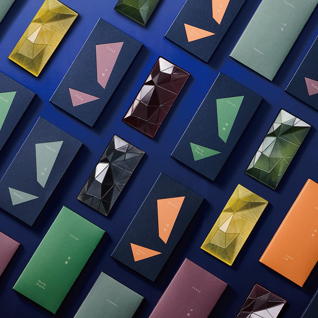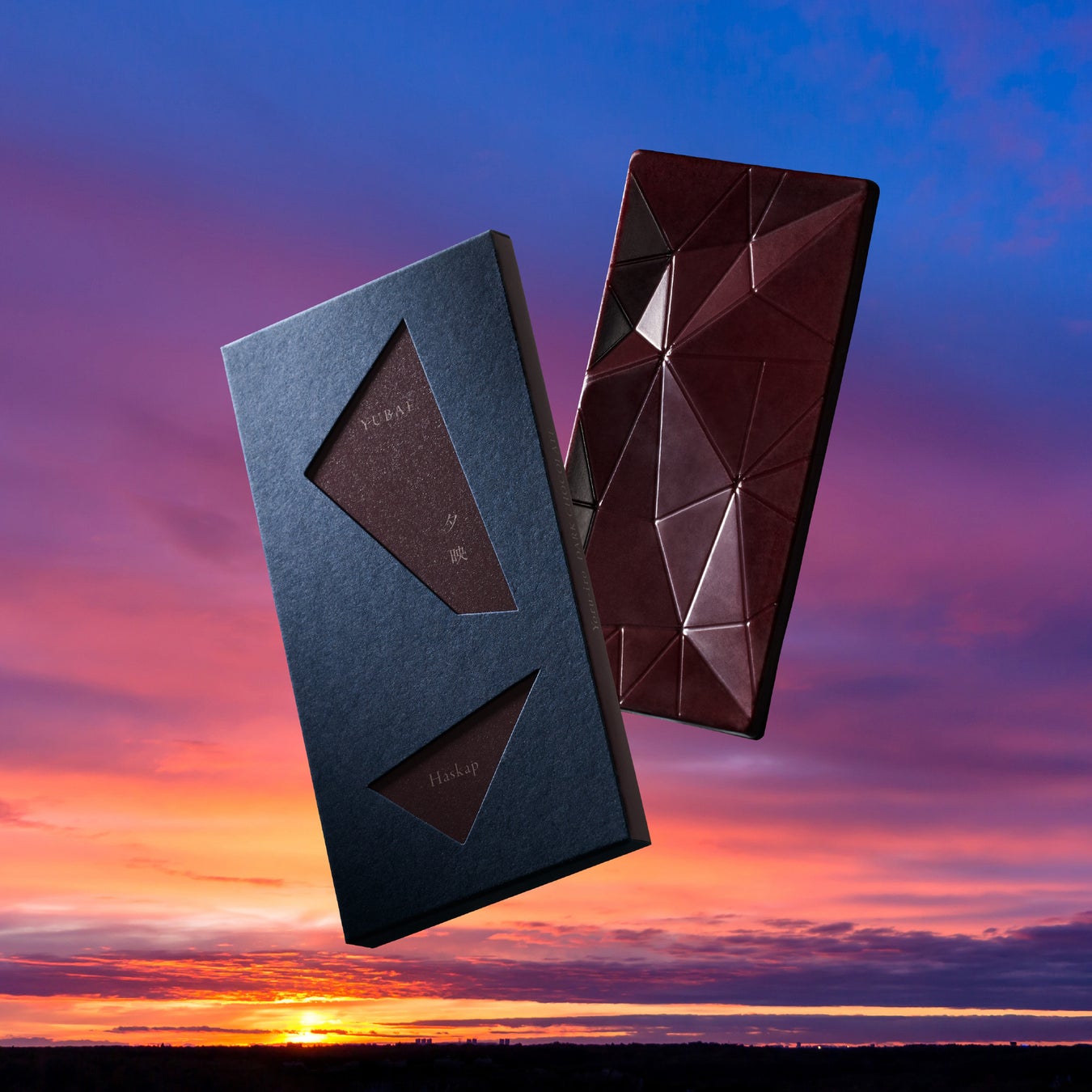 移りゆく夜空の情景をテーマにおつくりした「Yoru-iro DARK CHOCOLATE(ヨルイロ ダークチョコレート)」。ダークチョコレートにカカオバターを手作業で塗り重ね、2層構造に仕上げました。この2層は色あい・味わいともにあえて不均一にすることで、夜の空が刻一刻と変化するように、食べ進めていくことで違いをお楽しみいただけます。