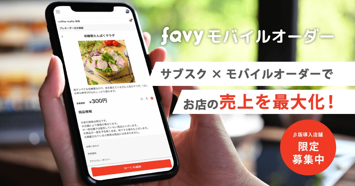 サブスク×モバイルオーダーでLTVを最大化!favyモバイルオーダーβ版を提供開始!30社限定で無料導入店舗を募集