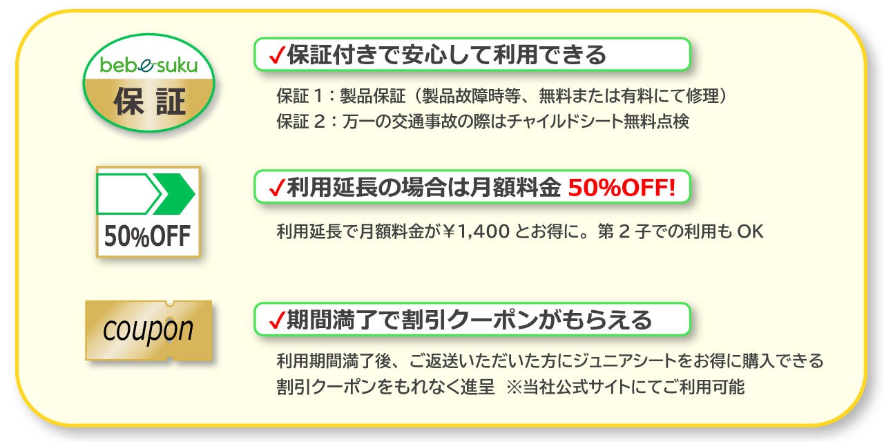 「べべ育」は上級モデルの新生児用チャイルドシートを2年間毎月“ていがく(定額・低額)”で利用できるサービスです。当社は「モビリティマーケット」との連携により「ベベ育」の認知を広げ、より多くの方に安心安全なチャイルドシートを届けることを目指してまいります。