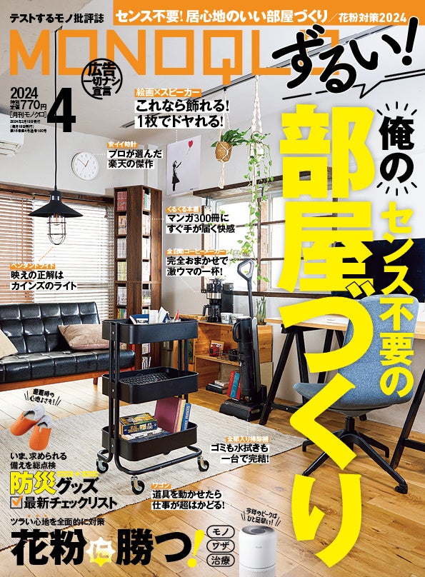 センス不要で居心地のいい部屋がつくれる“ずるい”アイテムを大特集!花粉症対策や防災グッズなども紹介【MONOQLO 2024年4月号】