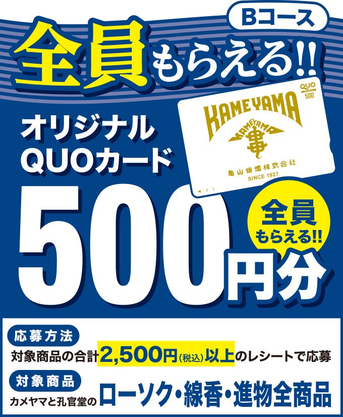 もれなく全員にオリジナルクオカード500円分をプレゼント。