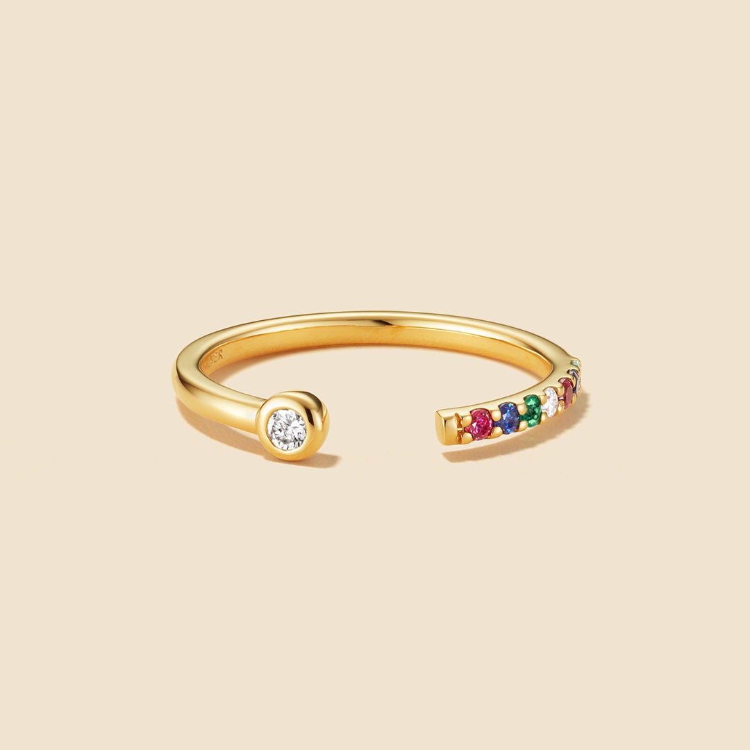 デザインはミニマルながらリュクスな印象に導くカラーストーンを連ねたマルチカラ―のネックレスは、リバーシブル仕様に。リサイクルメタルが艶やかに煌めく地金の面で着けると、モード感のある首元に変化します。リングには、人の手で生み出されたルビー、サファイア、エメラルドを迎えるようにラボグロウンダイヤモンドをセッティング。未来への鮮やかな希望の光を受けたリングを指元に巡らせて。