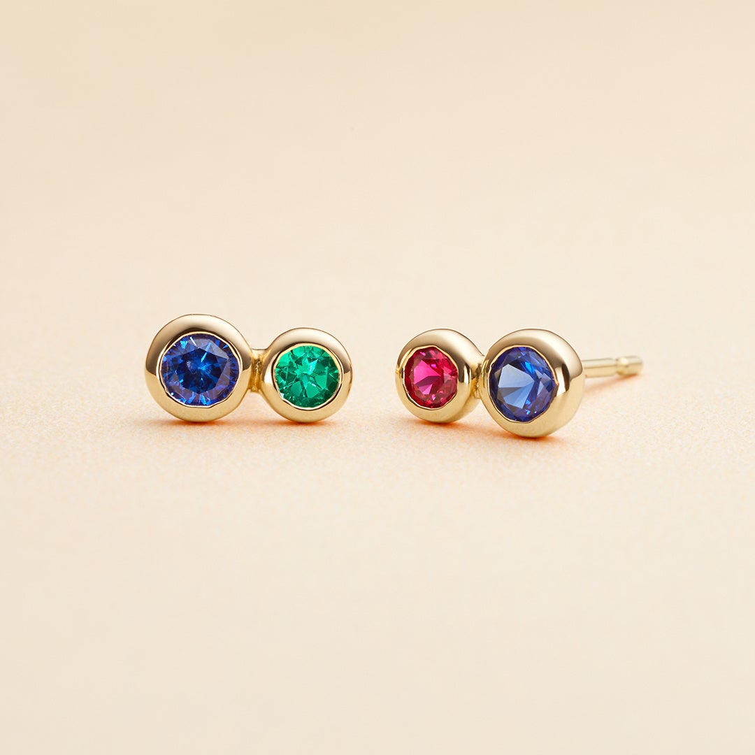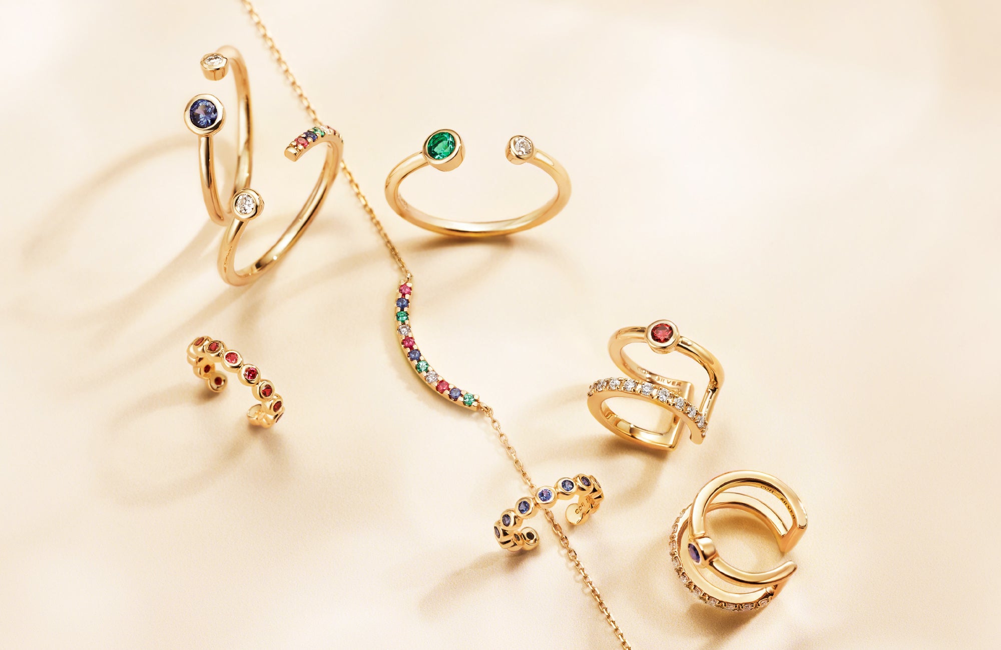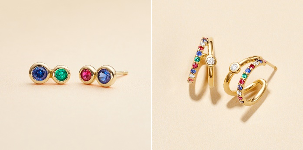 シンプルながらカラフルで存在感のあるアシンメトリーのピアス。力強い輝きが、あなたの横顔を色鮮やかに照らし出します。また一粒のラボグロウンダイヤモンドにカラーストーンを添えた二連風ピアスも登場。身に着けるだけで、いつものスタイルも華やかで明るい印象に引き上げてくれます。