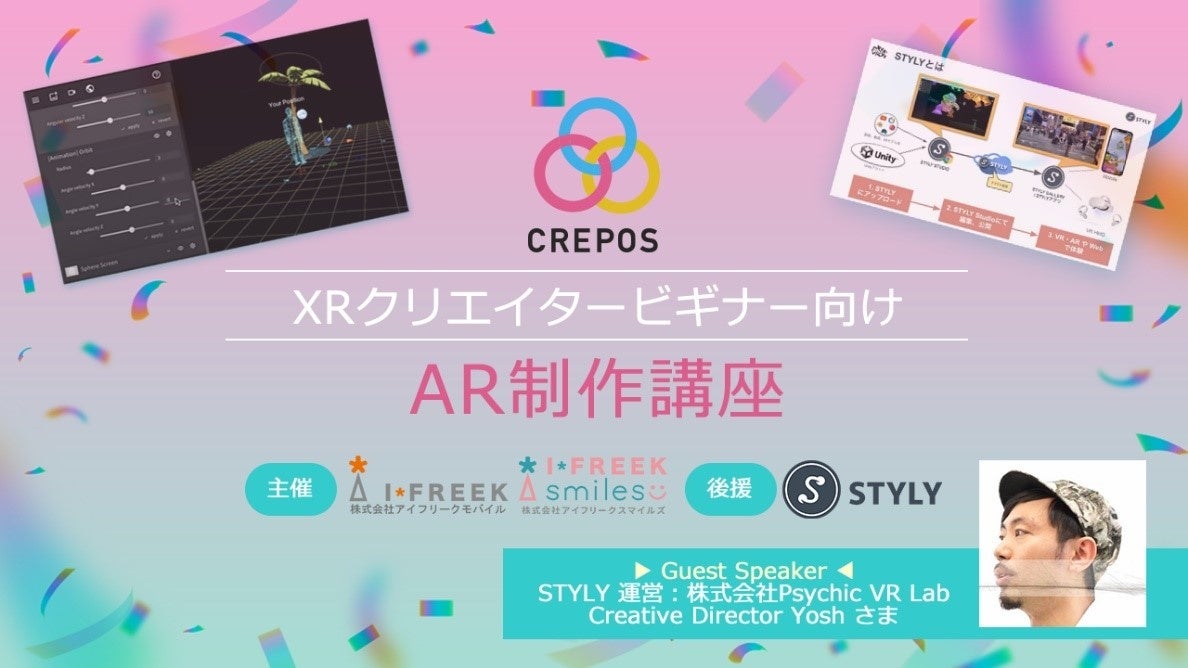 株式会社アイフリークモバイル(所在地:東京都新宿区、代表取締役社長:上原 彩美、以下 当社)は、当社と当社グループ会社である株式会社アイフリークスマイルズ(以下 アイフリークスマイルズ)が、咲洲プレ万博実行委員会(構成:アジア太平洋トレードセンター株式会社、公益財団法人大阪産業局ほか)と共に開催する、テクノロジーとアートの力で地域と人を盛り上げる「CREPOS ARアートフェスティバル」内のイベント、「ストリートアートARコンテスト」の開催に伴い、同イベントへの参加を検討するクリエイターに向けたAR制作講座の動画を本日から期間限定で公開したことをお知らせいたします。