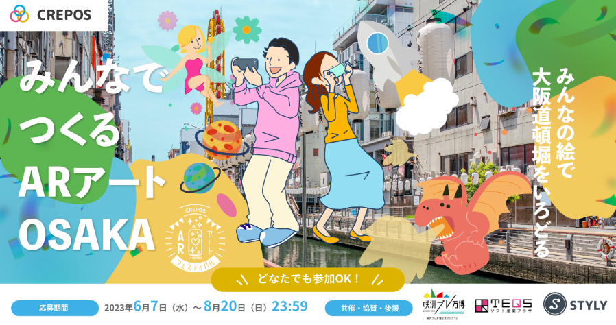 また、CREPOS ARアートフェスティバルでは、ARを使った未来のアート展示を、みんなでつくって体感するイベント「みんなでつくるARアートOSAKA」も同時開催中です。たくさんの方にAR技術を体験していただくことを目的としたイベントですので、こちらもぜひご参加ください。
