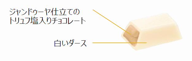 ヘーゼルナッツペーストを使用したジャンドゥーヤ仕立てのチョコレートにトリュフ塩を練りこんだプレミアムな白いダース。