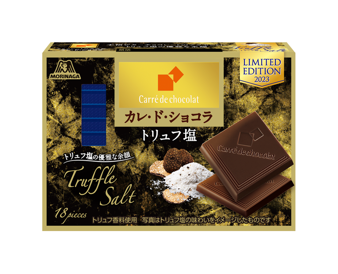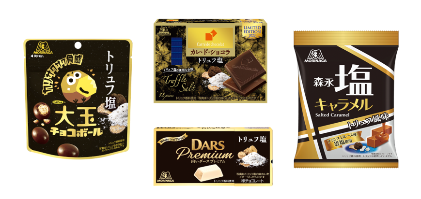 そんな「トリュフ塩」を使いご自宅でも気軽に贅沢なひと時を楽しんでいただくくため、この度「カレ・ド・ショコラ<トリュフ塩>」「白いダースプレミアム<トリュフ塩>」「大玉チョコボール<トリュフ塩>」を発売いたします。トリュフ塩をチョコレートに練りこむことで、口に入れた瞬間からトリュフの豊潤な香りと余韻が口いっぱいに広がり幸せな空間を演出いたします。また同時に、トリュフ風味を加えたクセになる味わいが魅力の「塩キャラメル<トリュフ風味>袋」も発売いたします。トリュフを感じる褒美スイーツをバリエーション豊かな商品ラインアップでお届けすることで、お客様に笑顔を提供してまいります。