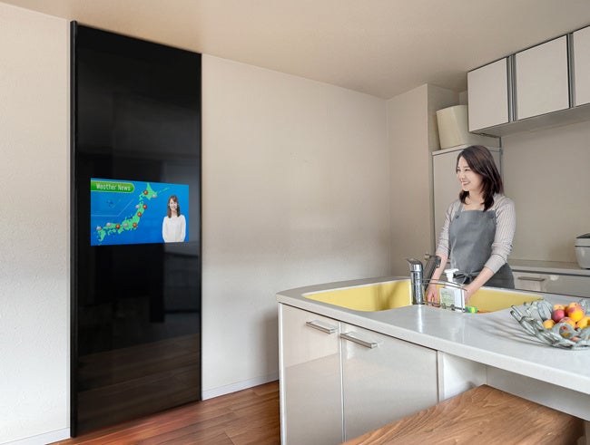 暮らしの動線上にあるため開閉の都度、ニュース、天気、カレンダーなど、情報が自然と目に入ります。