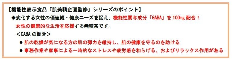 こうした変化する価値観、健康ニーズにお応えするべく昨年より発売した機能性表示食品「肌美精企画監修」シリーズは女性を中心に大変好評をいただいております。
