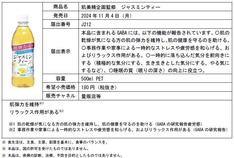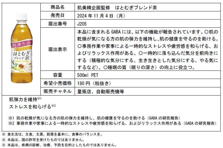 肌弾力を維持する※1「肌美精企画監修」シリーズがより進化して登場!機能性関与成分「GABA※2」100mg配合「肌美精企画監修※3 はとむぎブレンド茶」「肌美精企画監修※3 ジャスミンティー」を新発売