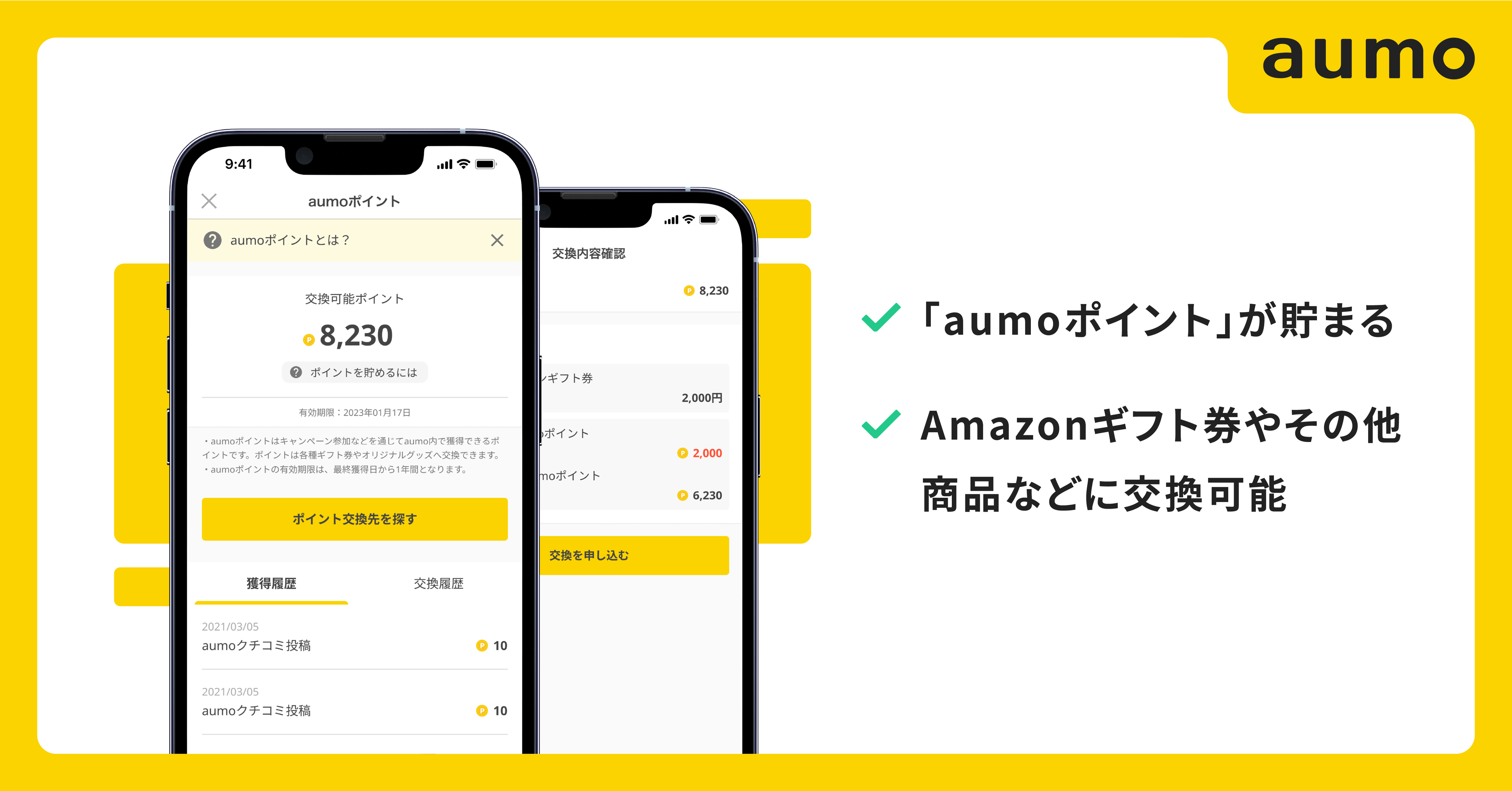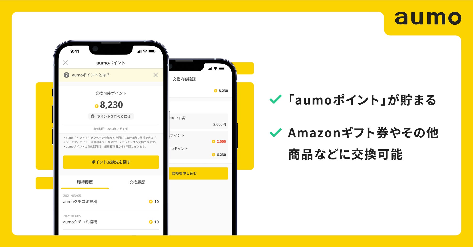 ・内容:「aumo」アプリで口コミを投稿してキャンペーンに参加