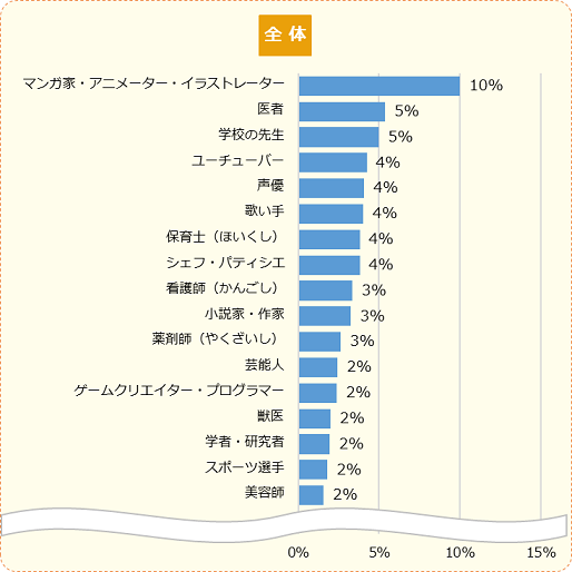 小中学生がなりたい職業の1位は、昨年に続き「マンガ家・アニメーター・イラストレーター」でした。