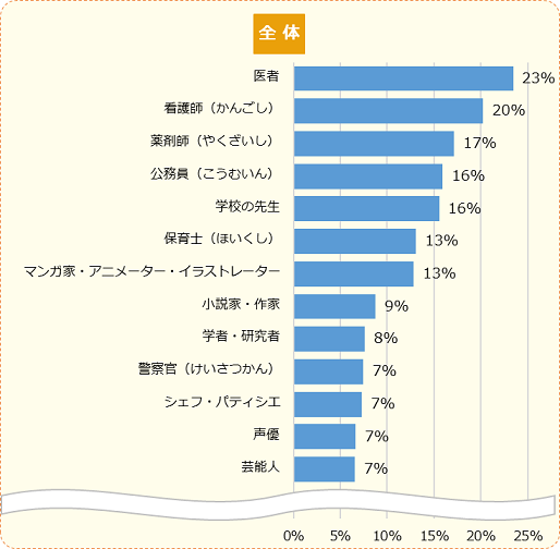 次いで、「医者」「学校の先生」の順でした。