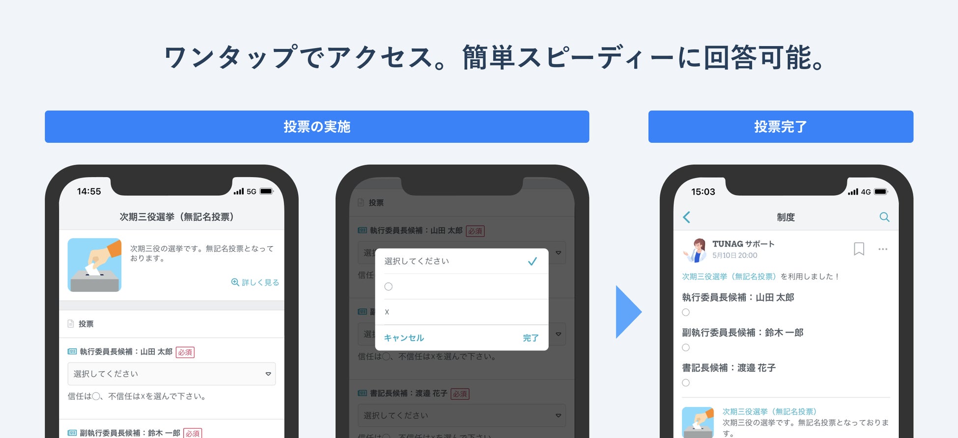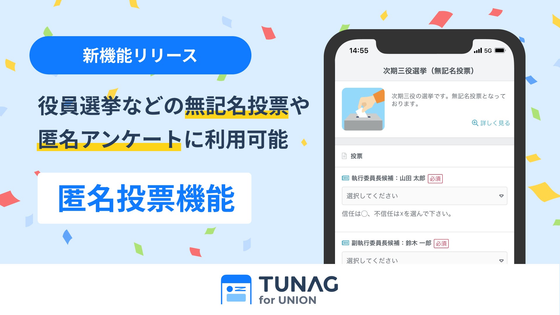 TUNAG for UNION 新機能 匿名投票をリリース。無記名での役員選挙の投票やアンケート回収に利用可能。