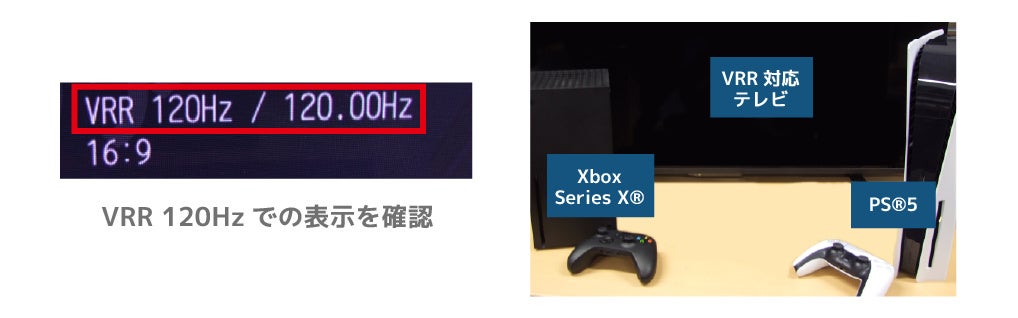 ※PlayStation®5とVRR対応テレビ、4K120Hz対応HDMI切替器をつないで VRR出力されていることを確認しています。