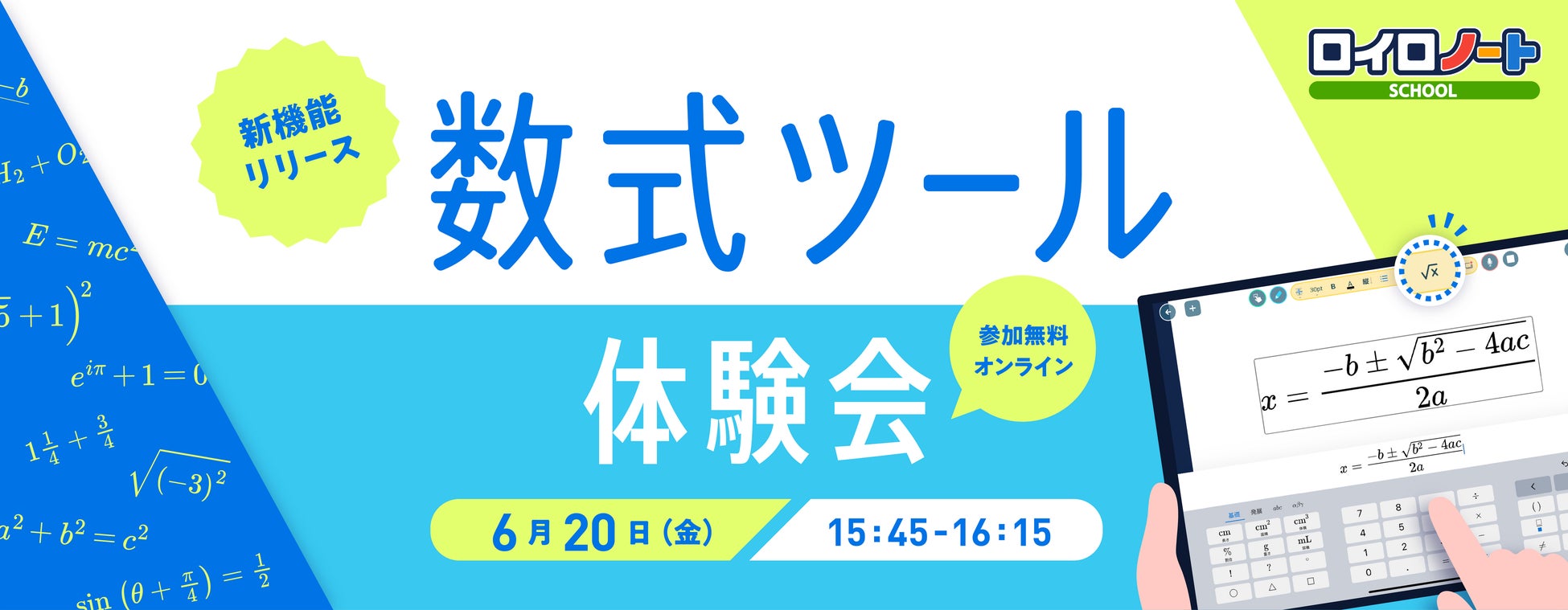 株式会社LoiLoは、6月20日(金)に「数式ツール体験会」をオンライン開催いたします。授業支援クラウド「ロイロノート・スクール」の新機能「数式入力」をご体験いただけるイベントです。参加費は無料です。ぜひご参加ください。