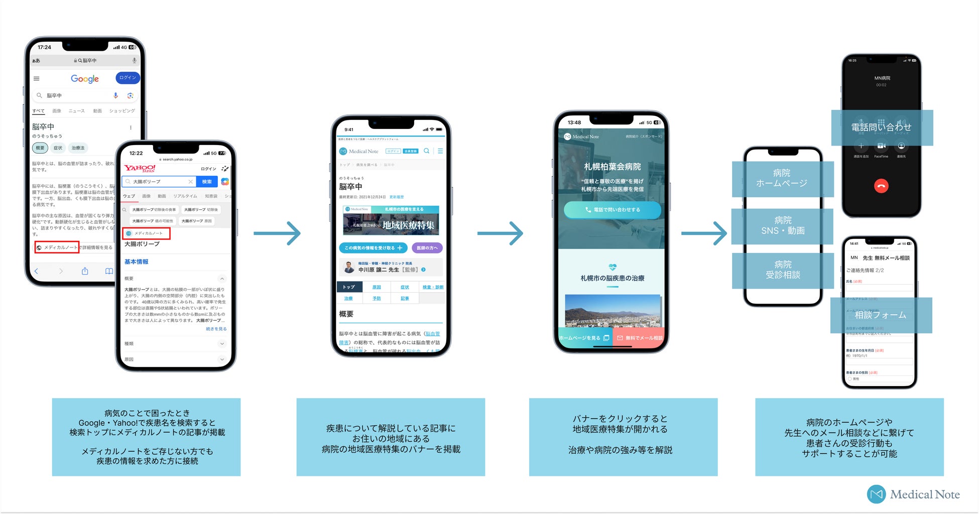 提供する医療情報はYahoo!検索やGoogle検索にも連携されており、多くの方にご利用いただいております。