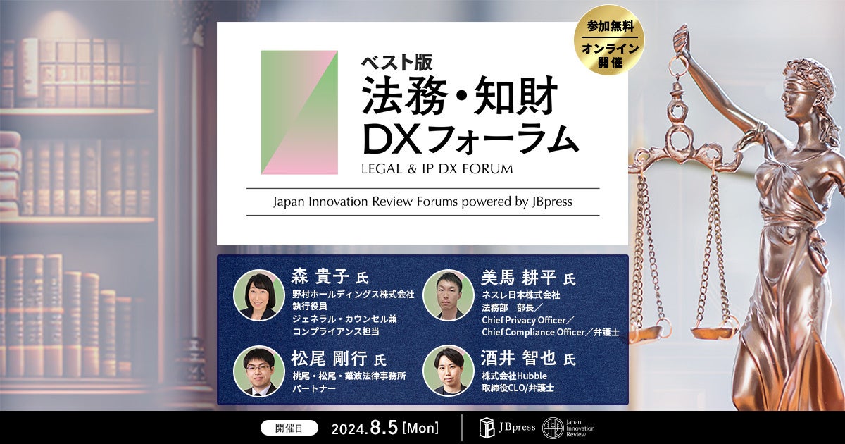 【8/5開催】JBpress/Japan Innovation Review主催「法務・知財DXフォーラム(ベスト版)」で当社取締役CLO 酒井が登壇