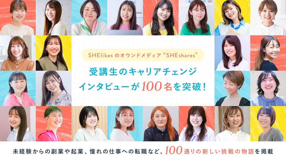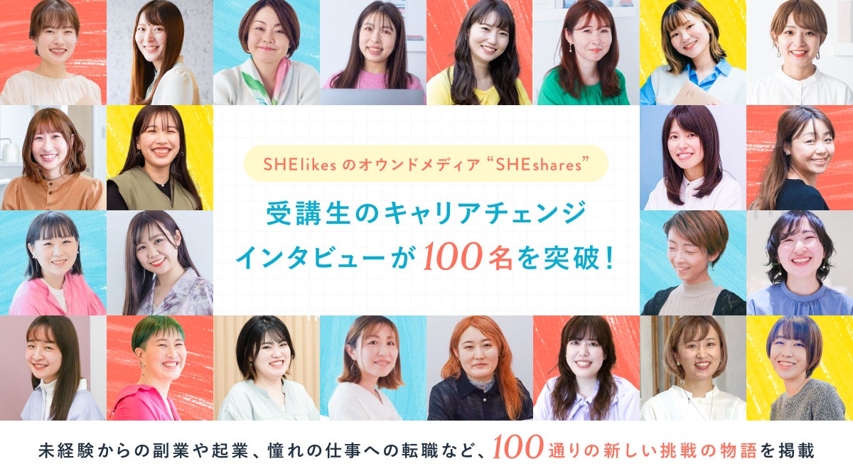 SHEが運営するオウンドメディア『SHEshares』、受講生のキャリアチェンジインタビューが100名を突破