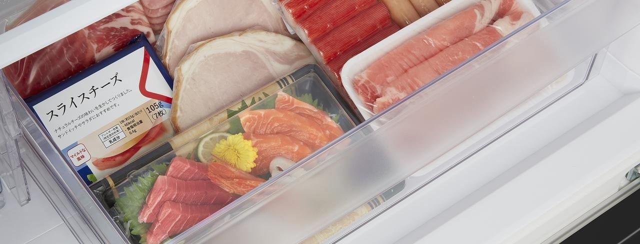 「まるごとチルド」(*2)は、冷蔵室の全段が低温約2℃(*3)なので、どこでも肉・魚を保存でき、約5日後でも加熱調理しておいしく食べられます。また、作り置きや下ごしらえした食品も菌の繁殖を抑えて鮮度が長持ち(*4)します。