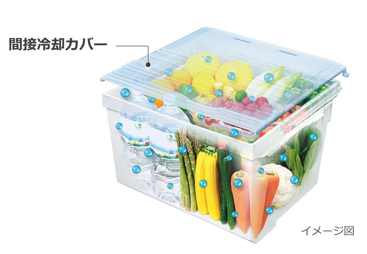 冷気を直接あてない間接冷却で、野菜の乾燥を抑えながら保存。「間接冷却カバー」で、野菜から出る水分を野菜室内に閉じ込めます(*8)。